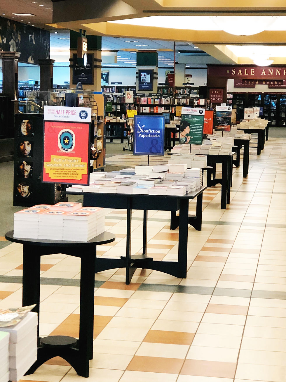 I make my way through the center section of tables where those books clubs and classics are. Do I have this copy of Little Women already? How badly do I want to read Where the Crawdads Sing? Do I need a Harry Potter backpack? Should I risk it and buy one of those wrapped surprise books? The answer is yes, yes of course to all!