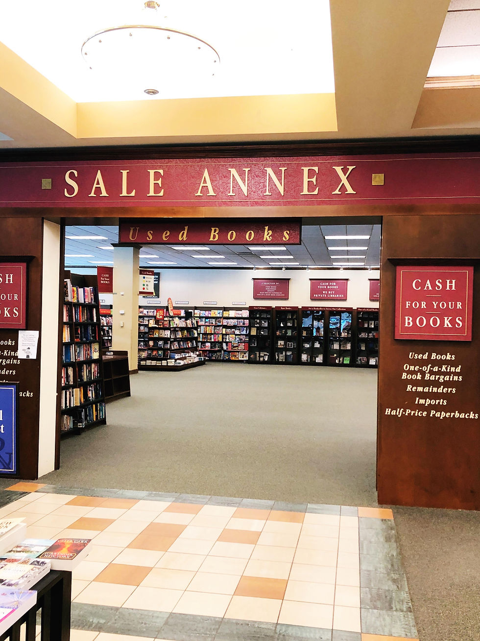 First, we head to the back of the store. Stopping briefly to check out the tables of books set out by theme: classics, Oprah’s book club picks, Reese’s book club picks, schoolbook lists, and more. My hand grazes over colorful covers as I stroll to my destination. A huge back room where the used books and discounted books are sold.