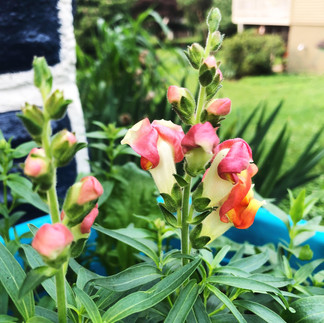Our zinnias are doing well, even though one of our planters didn't produce anything for the first time in years. Lavender sprouted in the front along with snapdragons! My replanted iris bloomed in their new home on the side of the house. And all my indoor plants lived through the winter and continue to brighten my day. Even my orchid is still alive; it may not be flowering, but it's still green, and that's something!